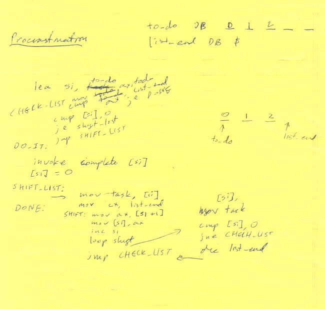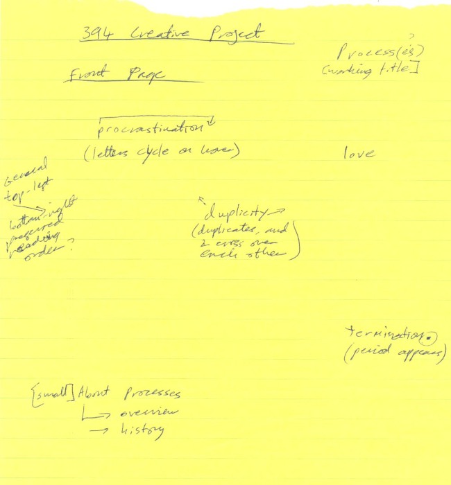 Each Process went through basically the same stages of creation. First, the basic idea is sketched out on a legal pad. Then the full code is written and run. Often, this test code will either include extra print statements or need to be run in a debugger to check that the code is really doing what it should be doing. Then the code is marked up with HTML tags, and the commentary is added. The most time-consuming part of creation has been learning basic JavaScript and DOM methods as this is my first attempt at DHTML.